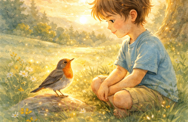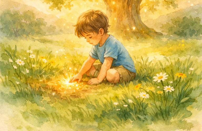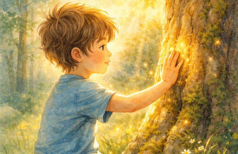 In Das Kind, das die Erde hören konnte begleitet der Leser ein Kind auf einer stillen, besonderen Reise – durch Wiesen und Bäume hinein in eine Welt, die sich nur denen zeigt, die wirklich zuhören.